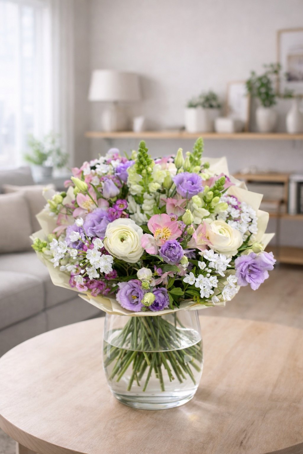 Výsledná květina se může drobně lišit od zobrazení na obrázku, zelení nebo dekoračním papírem. Vždy záleží na dostupnosti květin a dekorací na trhu.