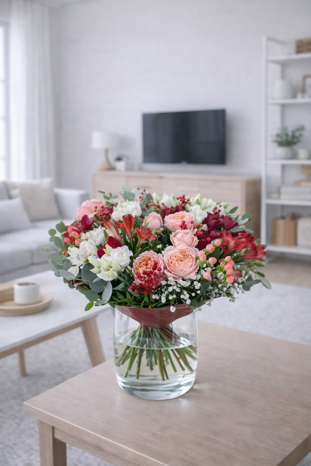 Výsledná květina se může drobně lišit od zobrazení na obrázku, zelení nebo dekoračním papírem. Vždy záleží na dostupnosti květin a dekorací na trhu.